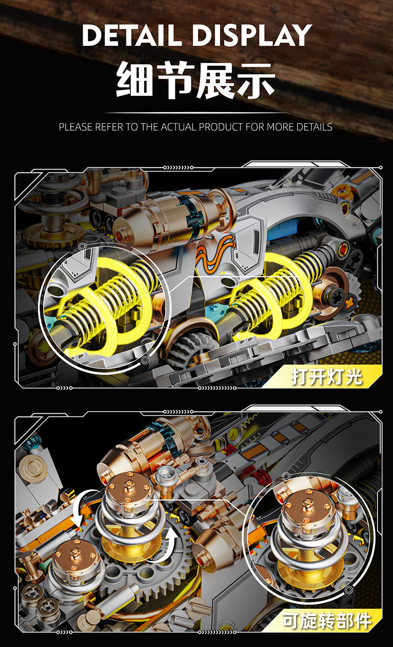 - Mechanical Whale with Lights and Base: Build a metallic style whale with LED lights and moving flippers tail via gears